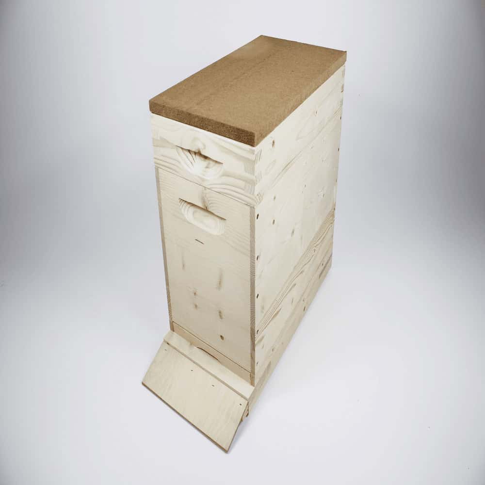 - Vollzarge mit zwei Muschelgriffen vorne und hinten: Die Zarge ist einfach zusammenzuschrauben und bietet ausreichend Platz für das Bienenvolk.