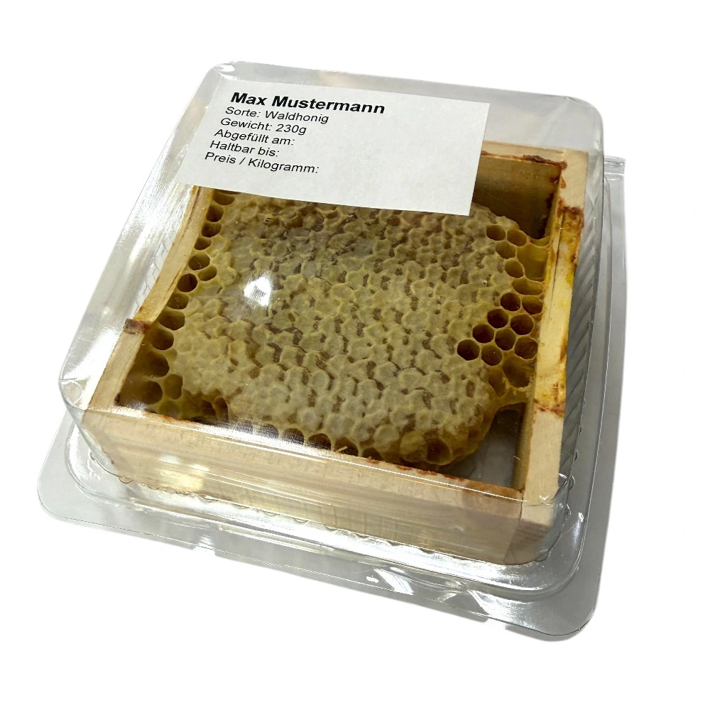 Durch das praktische Klappdeckel-System mit Aromaverschluss bleibt der Wabenhonig frisch und geschützt – perfekt für Direktvermarktung, Transport und Lagerung.